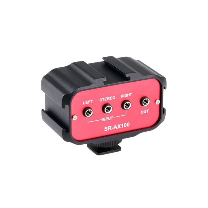 É um misturador de áudio ultracompacto de dois canais que torna possível ligar e misturar dois microfones directamente em câmaras DSLR, máquinas mirrorless e de vídeo que possuam apenas uma única entrada de microfone. Uma montagem de sapata (cold shoe) embutida na base permite que monte o AX100 na máquina e uma rosca fêmea 1/4 torna possível prendê-lo facilmente em cages, tripés e muito mais.