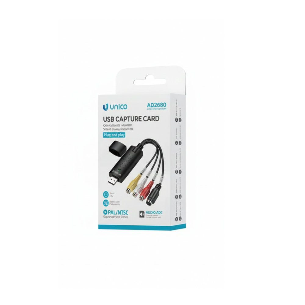 Basta ligá-lo a uma porta USB para converter e gravar conteúdos de antigos aparelhos com ligações RCA ou S-VHS. Compatível com os formatos PAL e NTSC, funciona em modo plug & play, sem necessidade de drivers adicionais.
