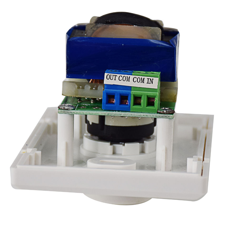 Placa para montagem na parede utilizando caixas eléctricas standard (503). Possui um regulador de volume de 11 níveis ligado a um transformador capaz de gerir um sinal com potência até 50W