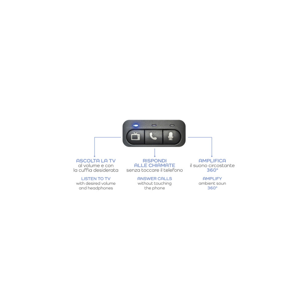 O SENIOR PLUS é um dispositivo de áudio inovador, especialmente concebido para pessoas seniores ou com dificuldades auditivas. Permite ouvir claramente a televisão ou qualquer outra fonte de áudio e, ao mesmo tempo, atender chamadas telefónicas sem se levantar do sofá. Representa a combinação perfeita entre tecnologia acessível e funcionalidade inteligente, oferecendo uma experiência de audição clara, personalizada e prática para utilizadores exigentes.