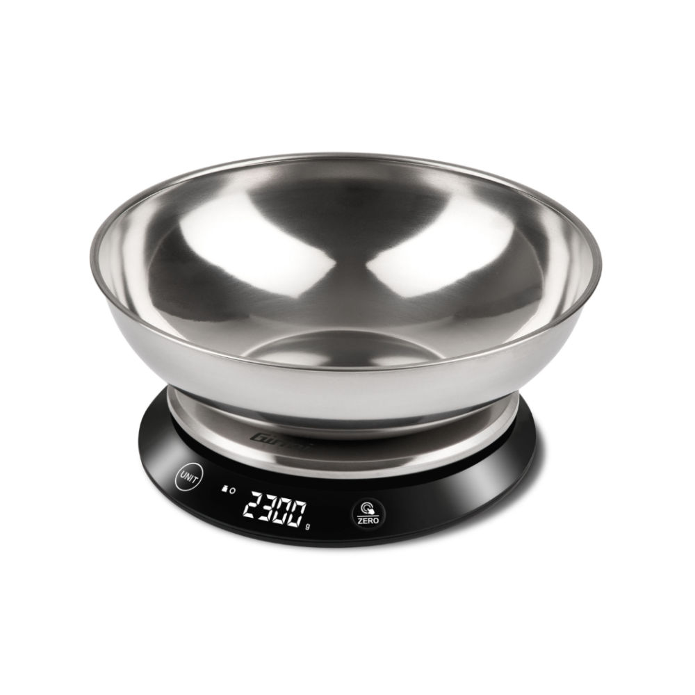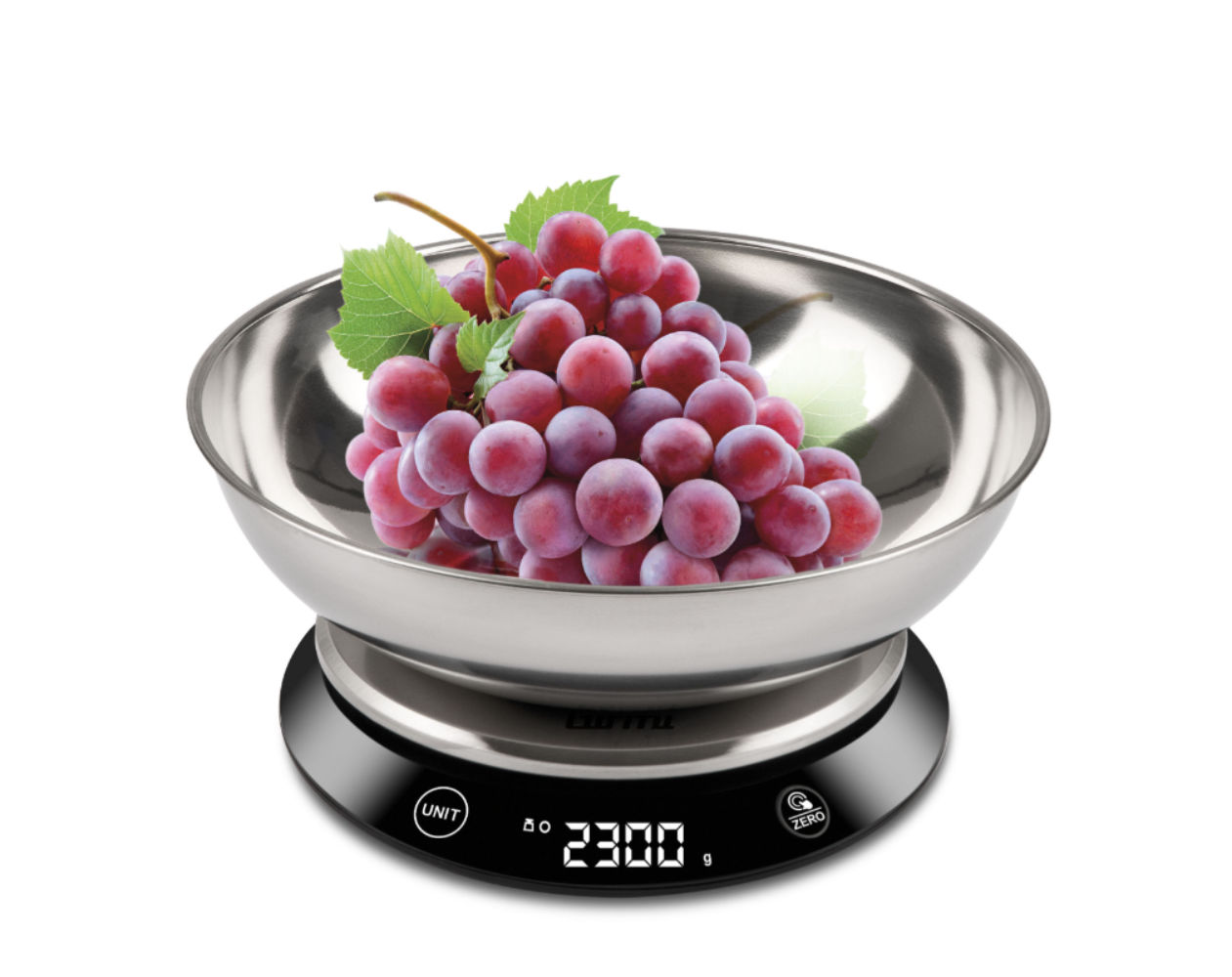 Apresenta um display inovador, discreto e fácil de utilizar, e graças ao seu design moderno, pode permanecer sempre à mão, pronta a ser usada. Inclui ainda uma grande taça em aço inoxidável, ideal para pesar qualquer ingrediente de forma rápida e prática.