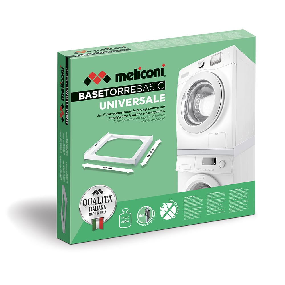 Os kits de sobreposição Meliconi oferecem uma solução simples, estável e confiável que permite imediatamente a criação de espaço extra, mesmo em espaços confinados, ao posicionar de forma segura a sua máquina de secar sobre a sua máquina de lavar.