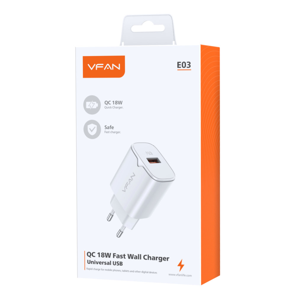 Carregador USB de 18W com suporte para Quick Charge 3.0.