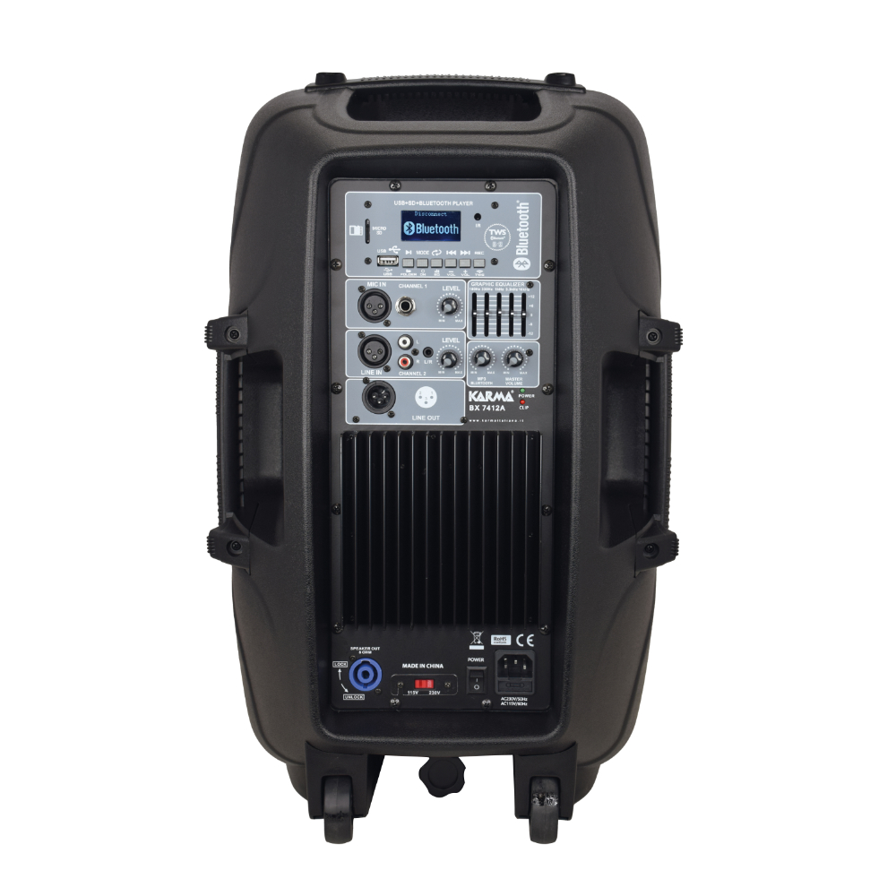 De grande potência e com uma gama de funções incomparável. Utiliza um woofer de 12″ e um tweeter de titânio, ambos de excelente qualidade. Possui um equalizador gráfico de 5 bandas, um MP3 player via SD/USB e uma tomada projetada para conectar um segundo alto-falante passivo (BX 7412). Equipado com TWS extensão