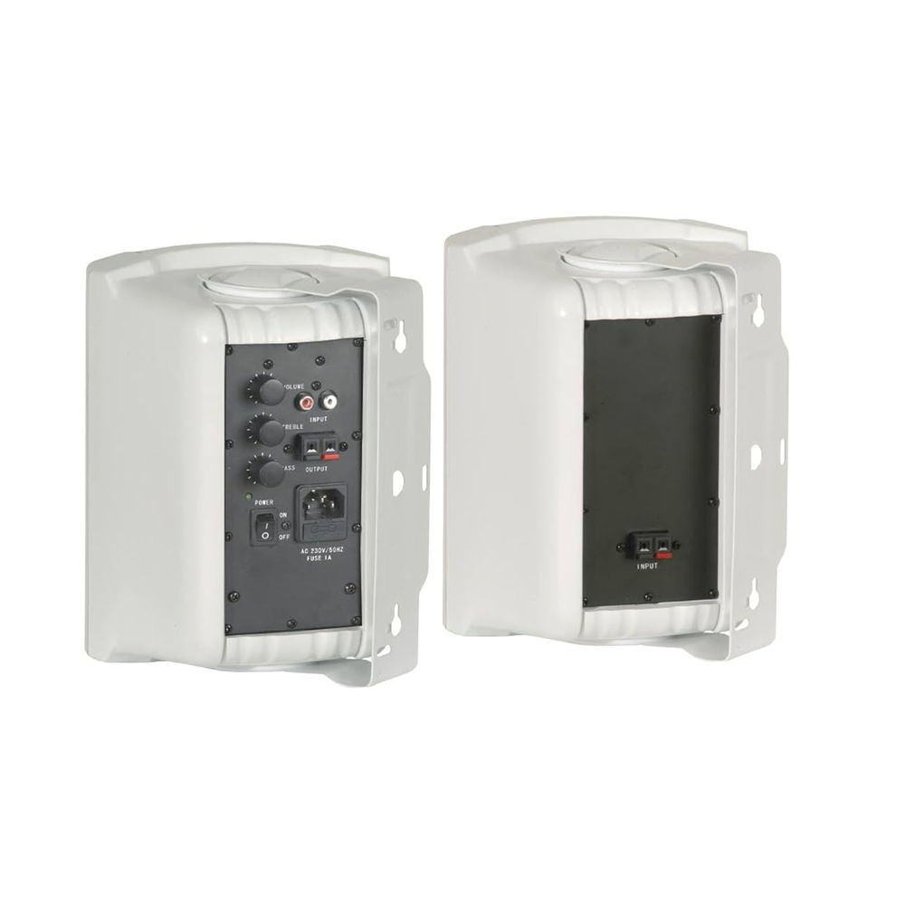 Conjunto composto por duas colunas de tamanho médio, perfeitas para uso doméstico ou como monitores de áudio para instrumentos como teclados. A unidade ativa possui um painel traseiro com controlo de volume, entrada de linha e ajustes independentes de agudos e graves, enquanto a coluna passiva recebe o sinal amplificado diretamente da principal.