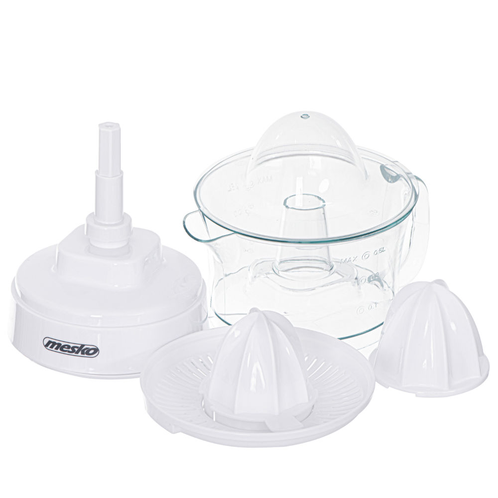 Um espremedor de citrinos elegante com uma potência de 40W. Permite preparar rapidamente e de forma eficiente um sumo fresco de limões, laranjas ou toranjas. A peneira colocada no recipiente retém a polpa e as sementes, impedindo que estas cheguem ao sumo. Graças à rotação para a direita e para a esquerda, cada gota será extraída da fruta. Uma solução muito prática e conveniente é o facto de o dispositivo ligar automaticamente quando é aplicada pressão e desligar quando a fruta é removida. Uma tampa de segurança evita que o sumo salpique sobre a mesa ou pela cozinha. O espremedor de citrinos MS 4010 está equipado com um recipiente com capacidade de 0,5L, permitindo preparar sumo para 2 pessoas de uma só vez. Uma grande vantagem deste espremedor é o seu tamanho, que facilita o armazenamento do dispositivo. Todas as partes, exceto a parte do motor, são laváveis na máquina de lavar louça.