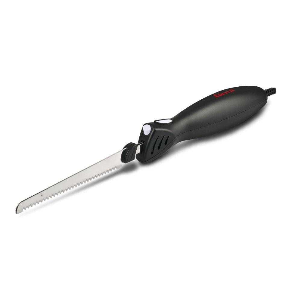 A faca eléctrica Girmi CT10 representa a combinação perfeita entre excelente desempenho e versatilidade de utilização: equipada com um potente motor de corrente contínua e uma pega ergonómica, é fornecida com dois conjuntos de facas de lâmina serrilhada em aço inoxidável, que garantem um corte limpo e preciso tanto na carne como no pão.