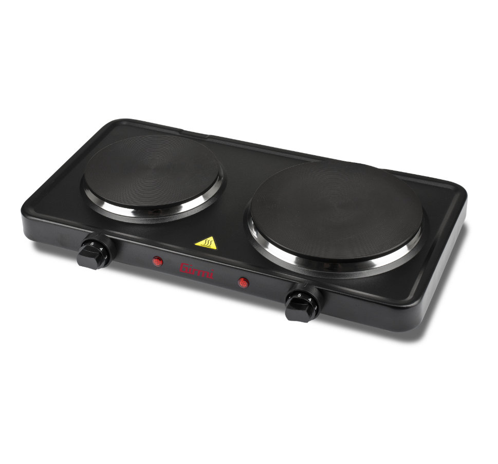 O fogão elétrico portátil PE36 dispõe de duas placas em ferro fundido antiaderentes, muito fáceis de limpar: a maior, com 185 mm de diâmetro, desenvolve uma potência de 1500 W, garantindo uma confeção rápida e perfeita de todo o tipo de alimentos; a mais pequena, com 155 mm de diâmetro e 1000 W de potência, é ideal para aquecer e manter a comida quente.