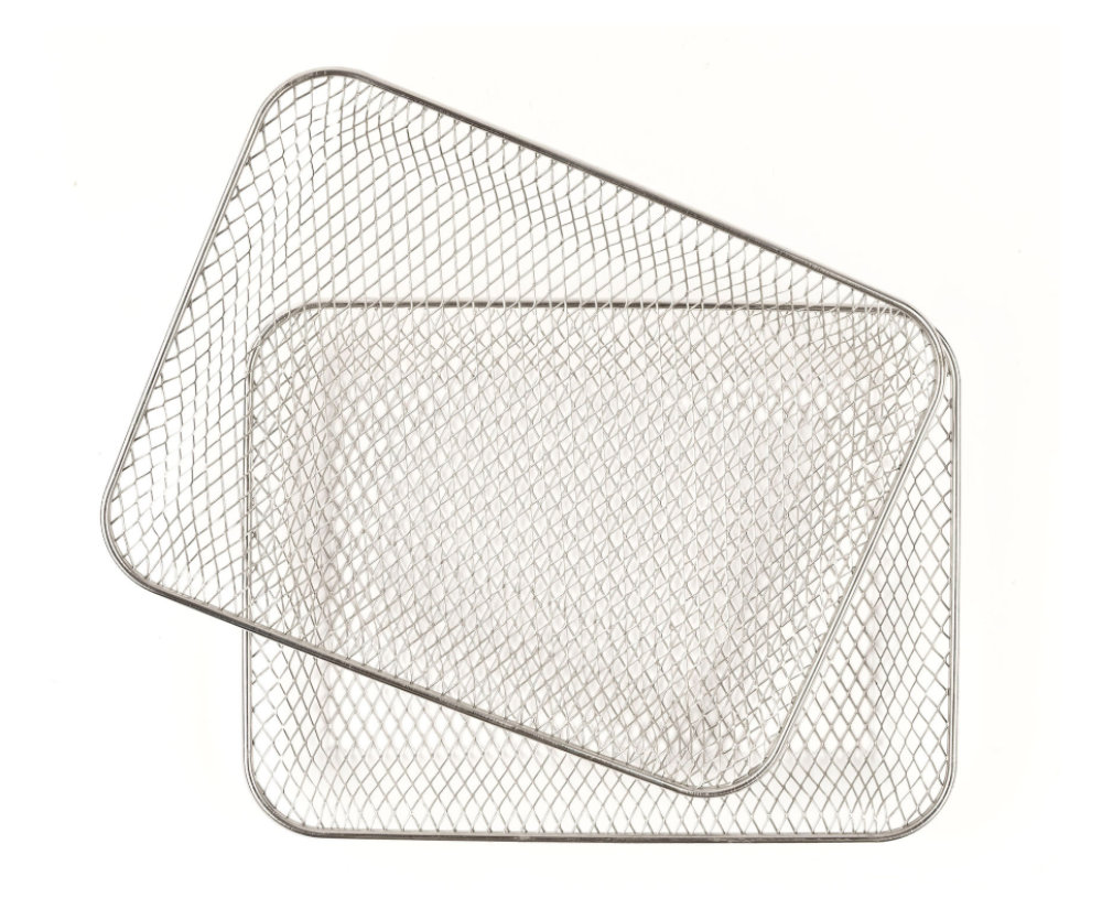 Acessórios incluídos: grelha em aço inoxidável, 2 cestos Air Fryer, tabuleiro antiaderente