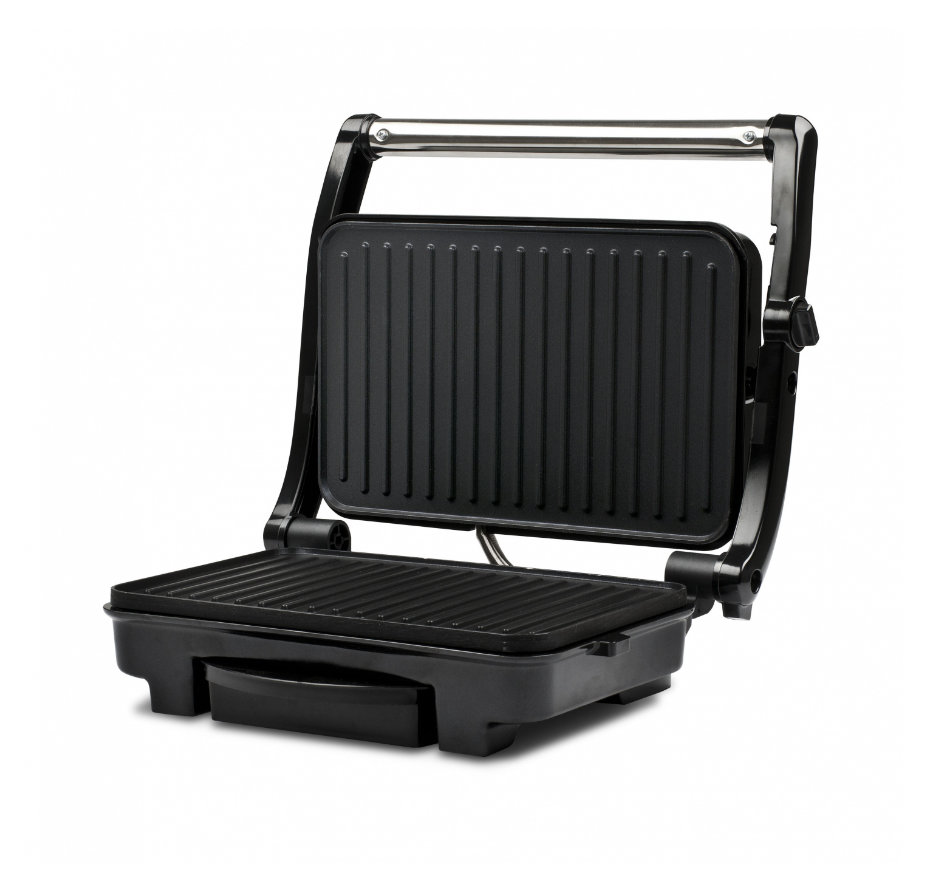 O aparelho está equipado com duas grandes placas antiaderentes que permitem uma confeção mais saudável, natural e sem gordura, garantindo um grelhado de excelência.