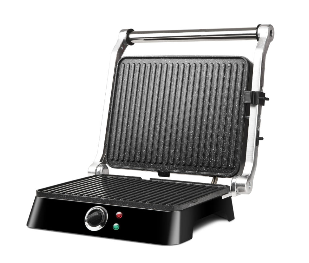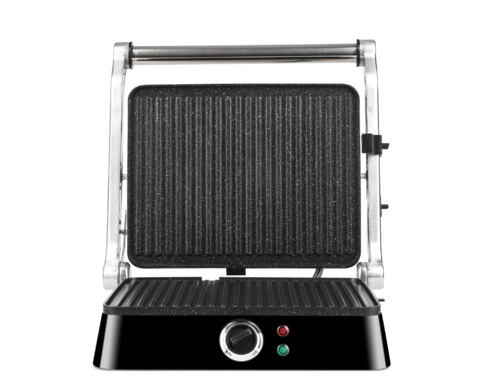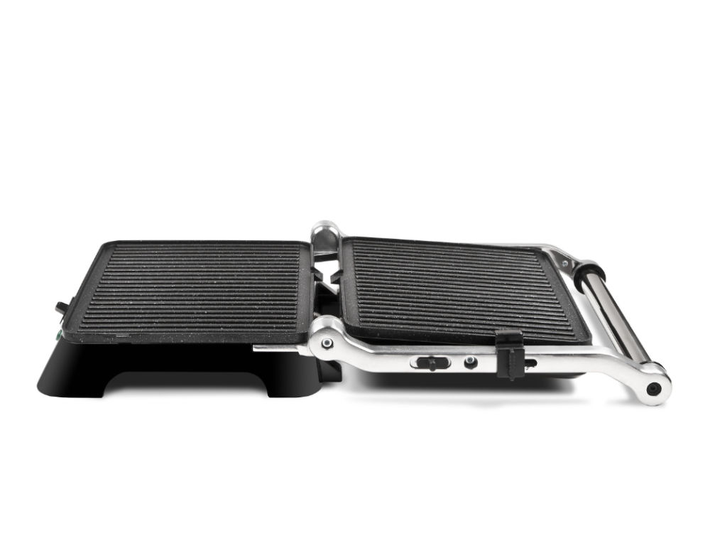 De dimensões compactas e fabricado em aço inoxidável, o BS44 oferece várias funcionalidades: pode ser utilizado como um grelhador de contacto tradicional, como prensa para Panini para preparar sanduíches saborosas, como chapa de meia abertura ou completamente aberto para grelhar peixe ou carne, duplicando assim a superfície de confeção. Dispõe de uma grande pega anti-aquecimento, e o botão de controlo de temperatura, bem como as luzes indicadoras de funcionamento e de “pronto a grelhar”, estão posicionados na base para maior comodidade. O aparelho está equipado com duas grandes placas amovíveis antiaderentes com revestimento especial “Petravera”: estas inovadoras placas antiaderentes com efeito pedra permitem uma confeção mais saudável, natural e sem gordura.