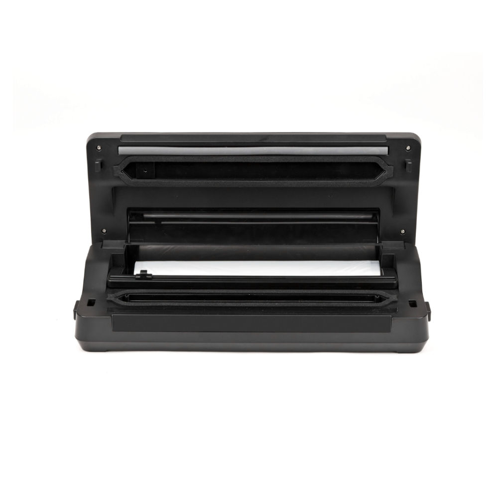 A tampa em aço inox confere resistência e elegância ao equipamento, e graças ao compartimento para rolos, cortador integrado e tubo para bombonas, a utilização torna-se completa, prática e simples.
