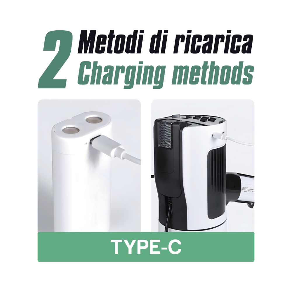 Carregamento via USB Tipo-C (na bateria ou no corpo do megafone)