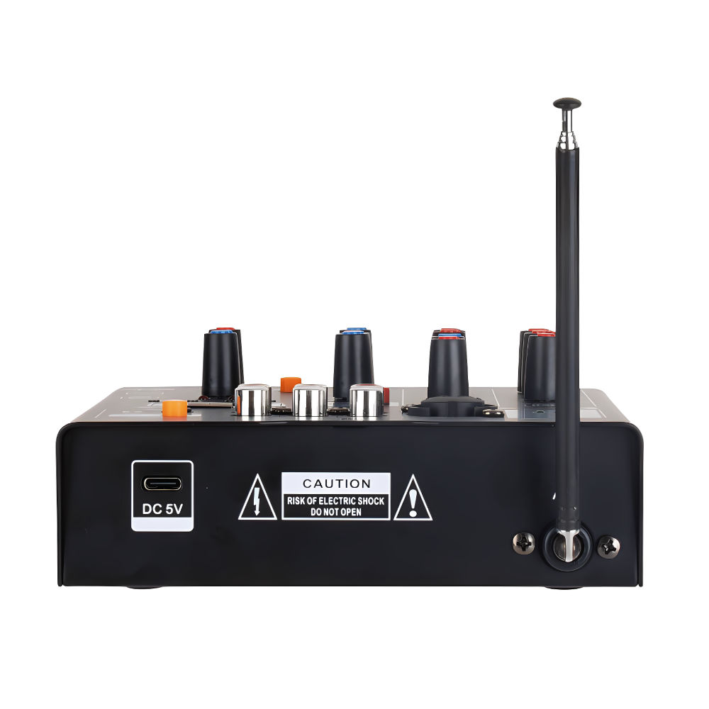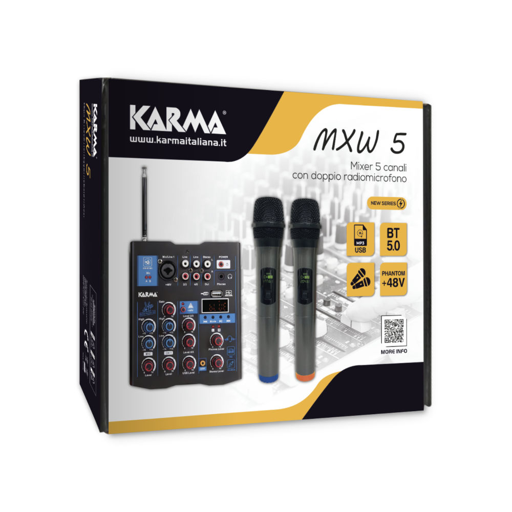 Mesa de mistura áudio compacta e facilmente transportável presta-se a ser utilizada numa grande variedade de situações. Aceita 1 entrada de microfone/linha através de um conetor combinado XLR/6,3 mm e 2 entradas de linha estéreo através de RCA. Único no seu género, possui 2 microfones sem fios para uma utilização prática em festas, eventos, cerimónias de entrega de prémios, baptizados, etc.