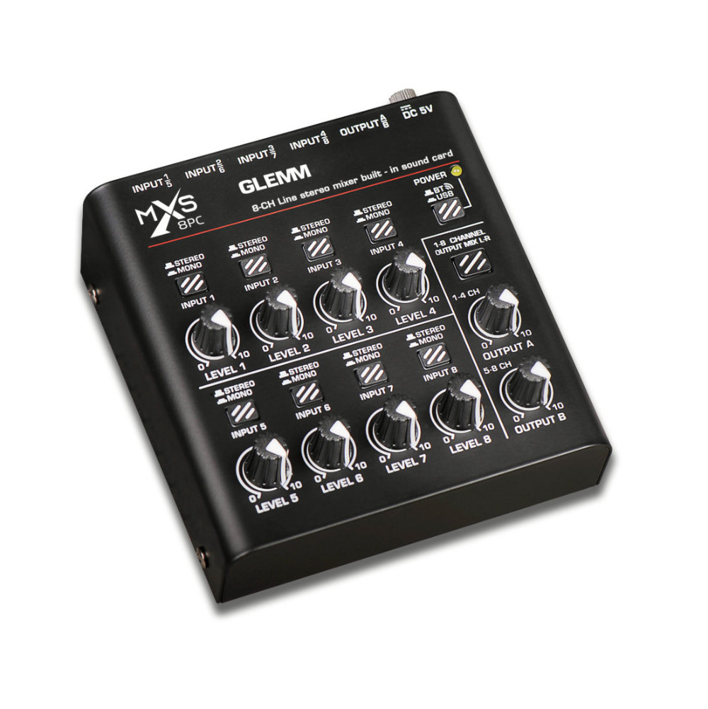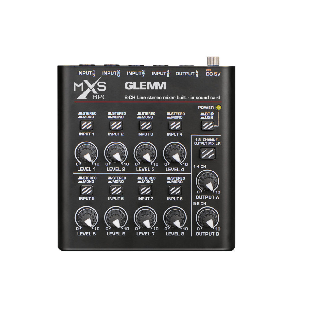 Compacta e completa, esta pequena mesa de mistura consegue gerir 8 sinais mono ou estéreo, disponíveis através de conectores de 6,3 mm. Cada sinal dispõe de controlo de volume independente e de um botão para definir se o som do canal é mono ou estéreo. As saídas estão também disponíveis em tomadas de 6,3 mm.