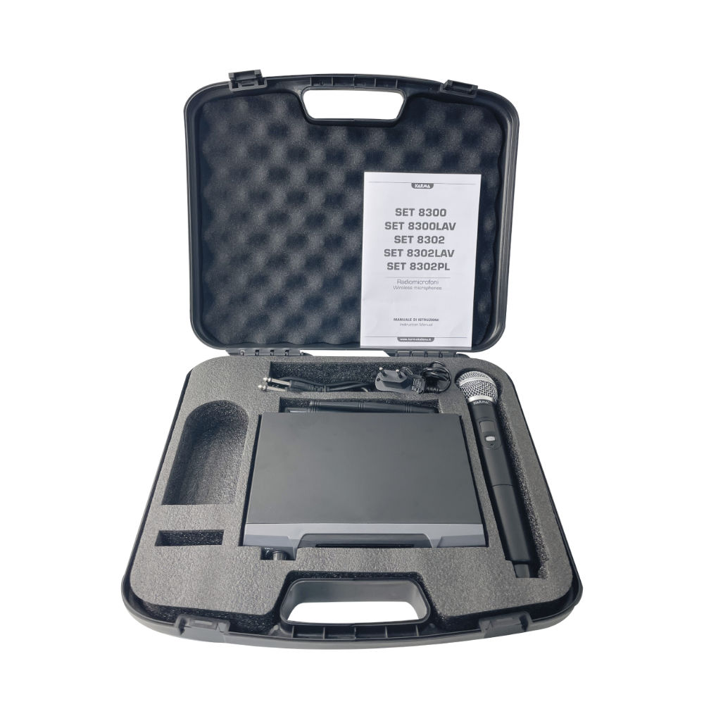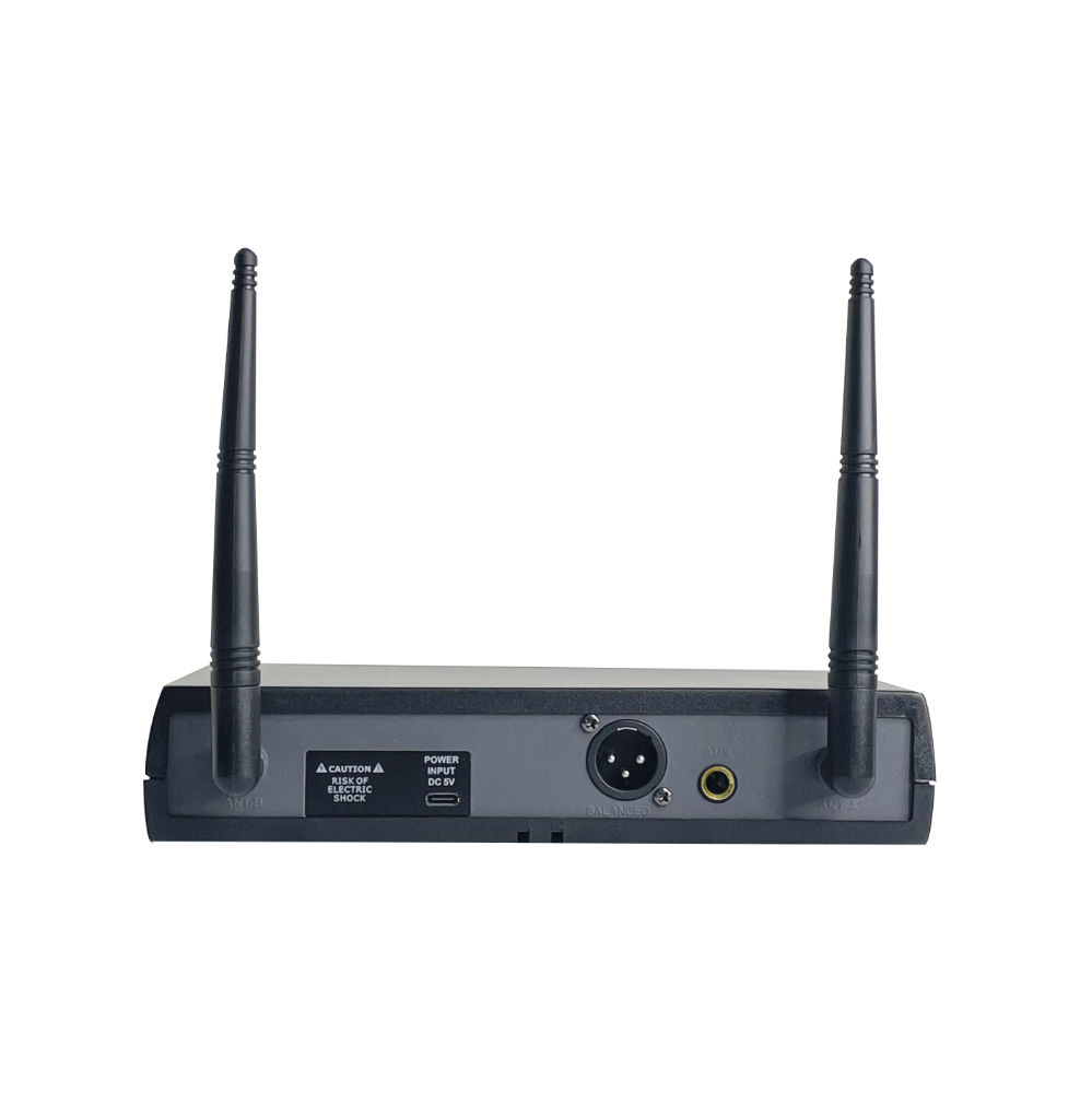 Microfone sem fios compacto e eficiente. Dispõe de 48 canais para funcionar em todas as condições. O alcance é de cerca de 50 m com um excelente desempenho acústico tanto para a fala como para o canto. A base do recetor possui uma tomada do tipo XLR e uma tomada mista do tipo 6,3 mm (saídas).