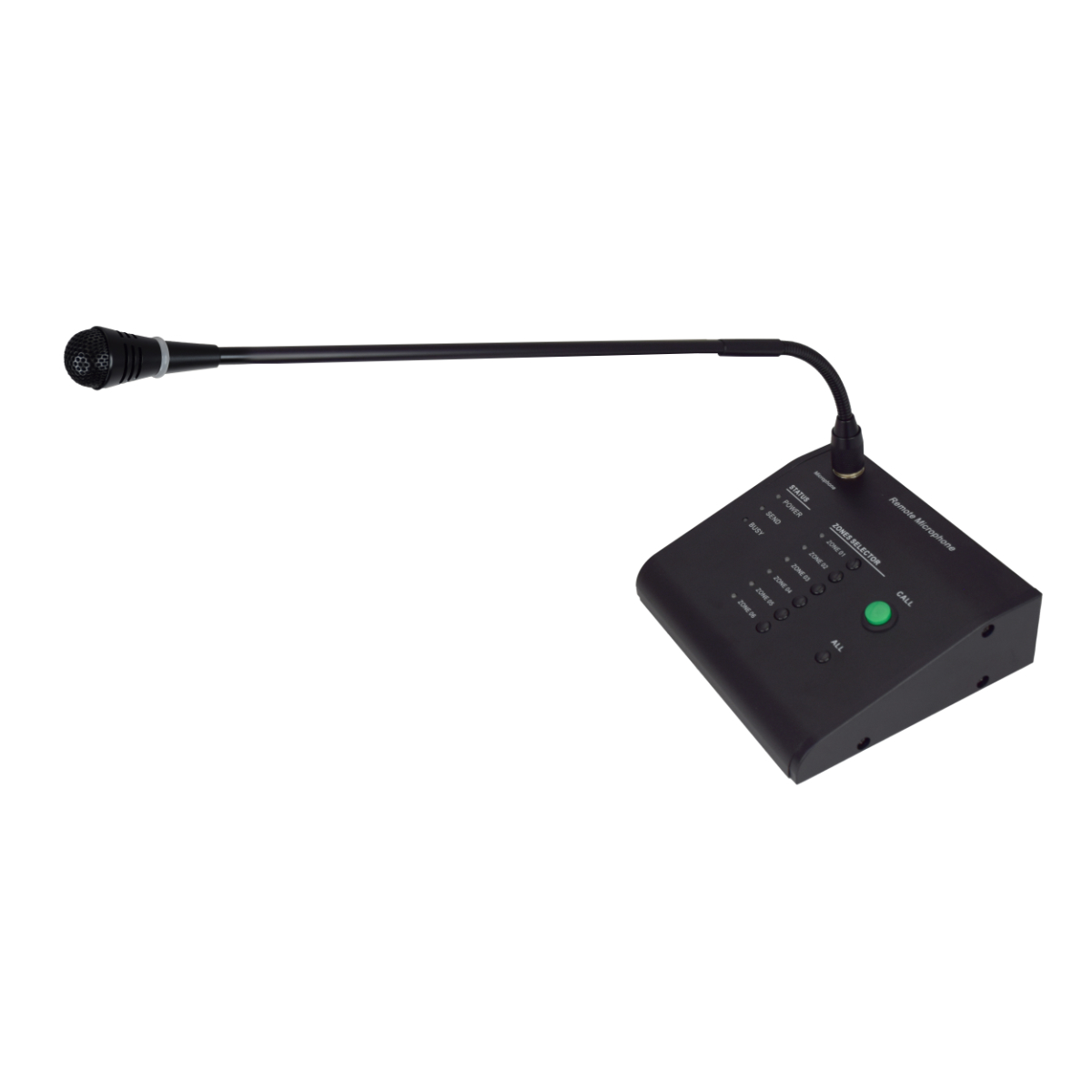 Microfone de mesa tipo paging, compatível com os amplificadores PAA 720MBZX e PAA 6240DMZ, ideal para anúncios em até 6 zonas. Permite enviar mensagens para zonas individuais ou para todas as zonas em simultâneo.