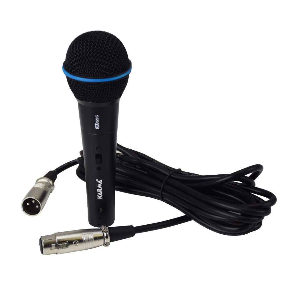 Microfone robusto mas leve com cabo de 4mt fornecido com conectores XLR macho/fêmea.