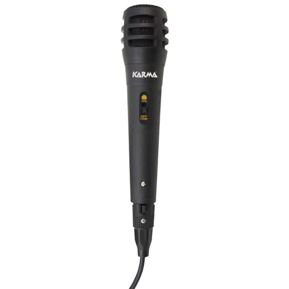 Microfone com cabo de 3 m e conector Jack de 6,35 mm para conexão a mesas ou amplificadores. É vendido numa elegante caixa que permite ver o produto no seu interior.