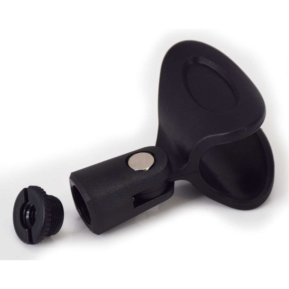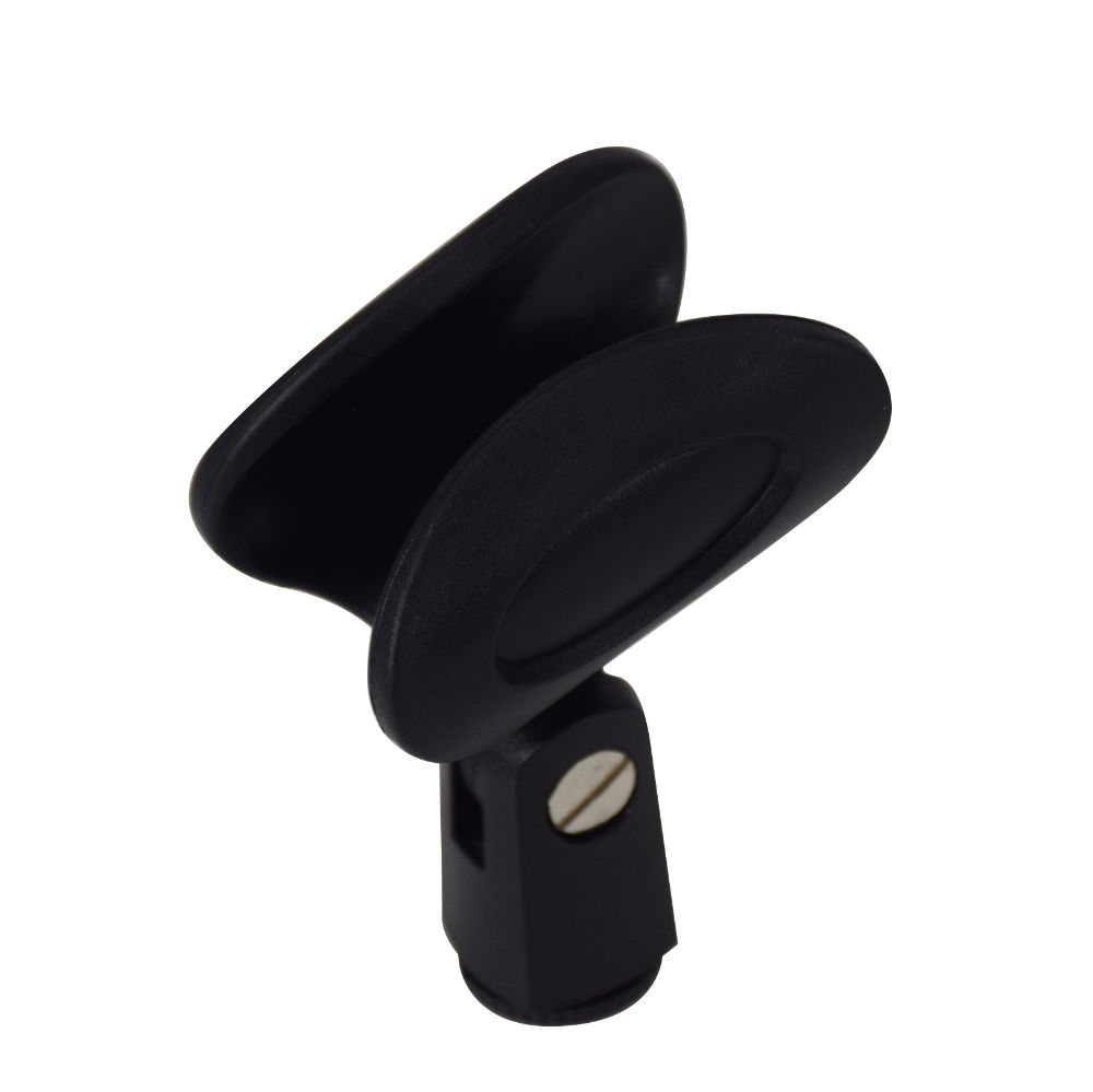 Suporte de microfone construído com material plástico leve. Permite que segure qualquer microfone. É aparafusado confortavelmente usando uma porca de anel roscado.