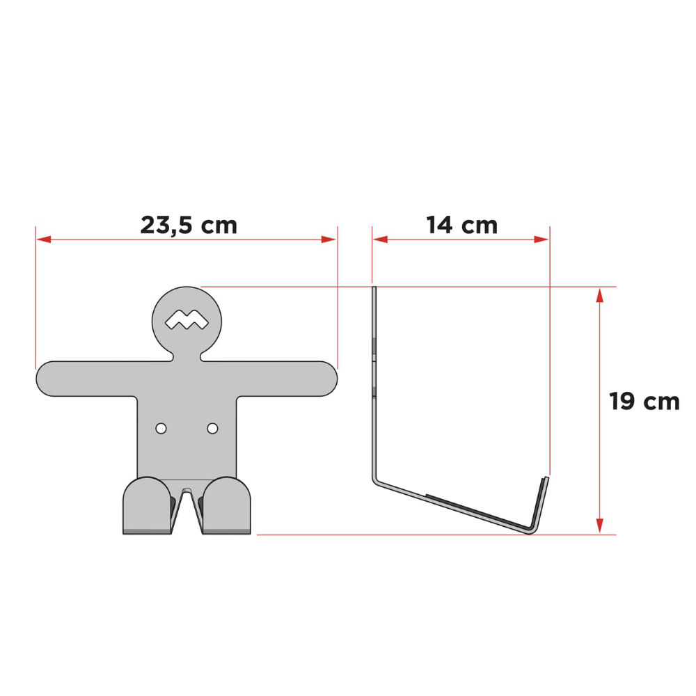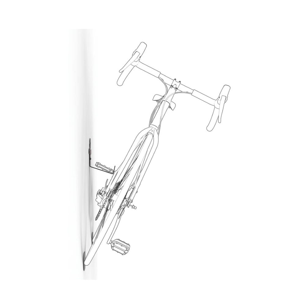 O suporte de pedal universal é a solução de economia de espaço que permite colocar a bicicleta na parede sem sujá-la, ocupando o mínimo de espaço possível graças às suas dimensões compactas.