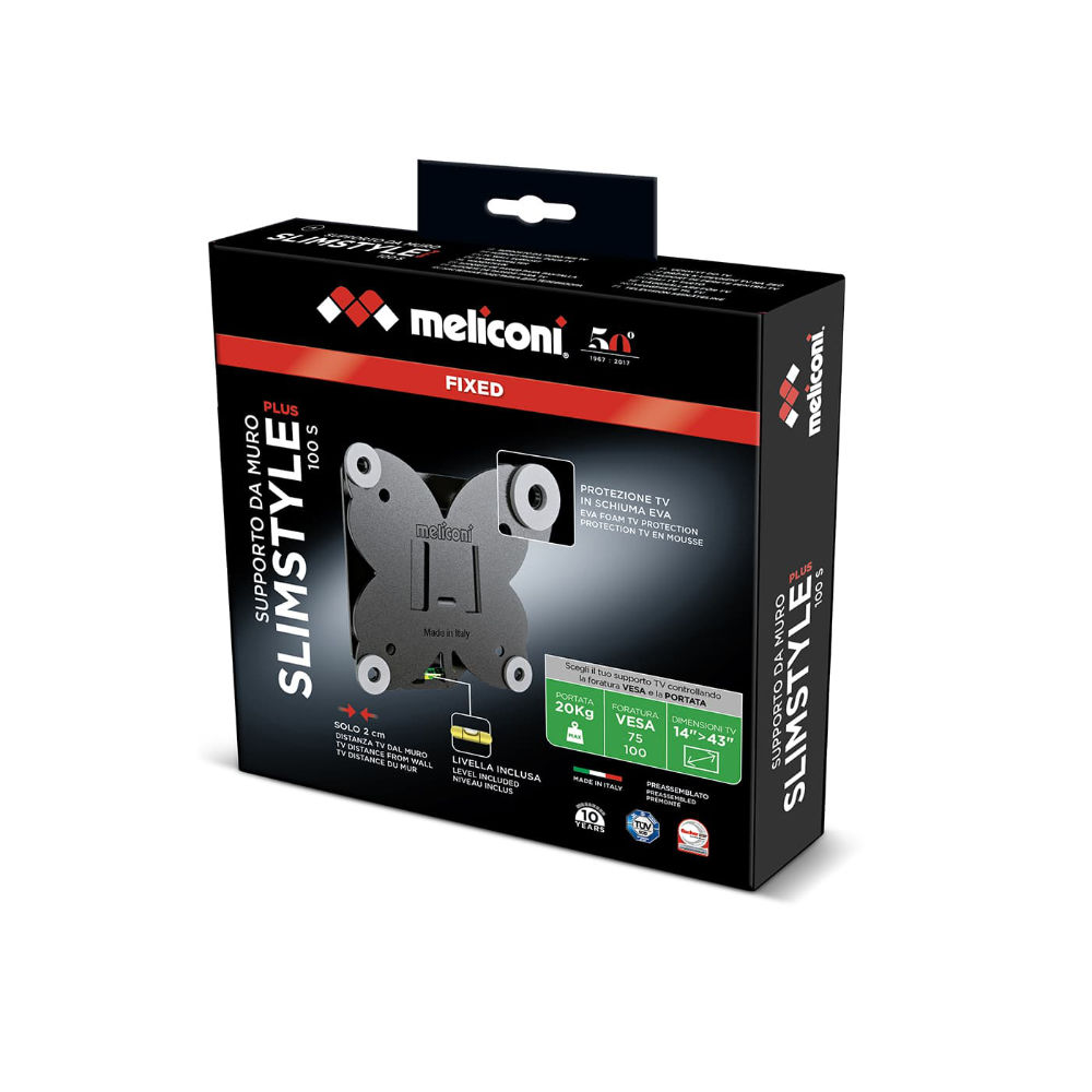 SLIMSTYLE PLUS é a nova linha de suportes de parede ultrafinos para TV da marca Meliconi S.p.A., uma combinação perfeita de tecnologia de ponta, materiais de última geração e design atraente. Graças às inovadoras funções EASY TILT e EASY TILT PRO, inclinar a sua TV nunca foi tão simples e preciso. Todos os suportes SLIMSTYLE PLUS são 100% Made in Italy, com qualidade certificada TUV e 10 anos de garantia.